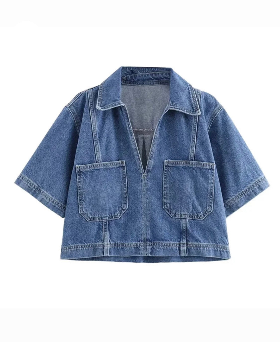 Esta blusa de mezclilla ligera es el equilibrio perfecto entre lo casual y lo chic. Con cuello solapa, corte corto y detalles modernos, es ideal para crear looks veraniegos llenos de estilo. Combínala con jeans, shorts o faldas para lograr un outfit fresco, cómodo y a la moda.
